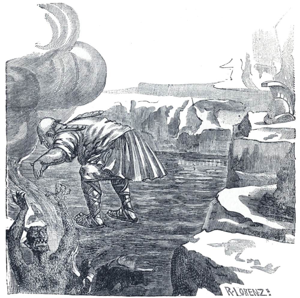 Then his father swore vengeance and sent valiant men to seize her and burn her as a witch. The result might have been anticipated. The nymph sang a song to the waves and plunged into them, laughing, the same waves upsetting the boat which held the soldiers, and she descended to her cave under the water, while her pursuers thought themselves lucky to escape with their lives.