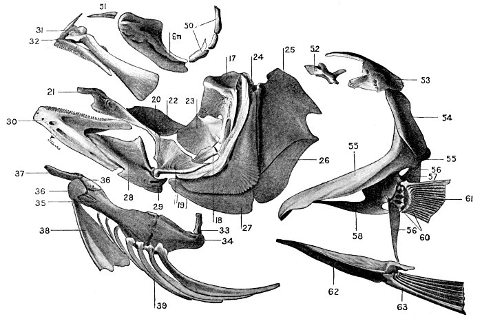 | Specialization of the Skeleton.—Homologies of Bones of Fishes.—Parts of the Skeleton.—Names of Bones of Fishes.—Bones of the Cranium.—Bones of the Jaws.—The Suspensorium of the Mandible.—Membrane Bones of Head.—Branchial Bones.—The Gill-arches.—The Pharyngeals.—The Vertebral Column.—The Interneurals and Interhæmals.—The Pectoral Limb.—The Shoulder-girdle.—The Posterior Limb.—Degeneration.—The Skeleton in Primitive Fishes.—The Skeleton of Sharks.—The Archipterygium.[Pg xii] | 34 |