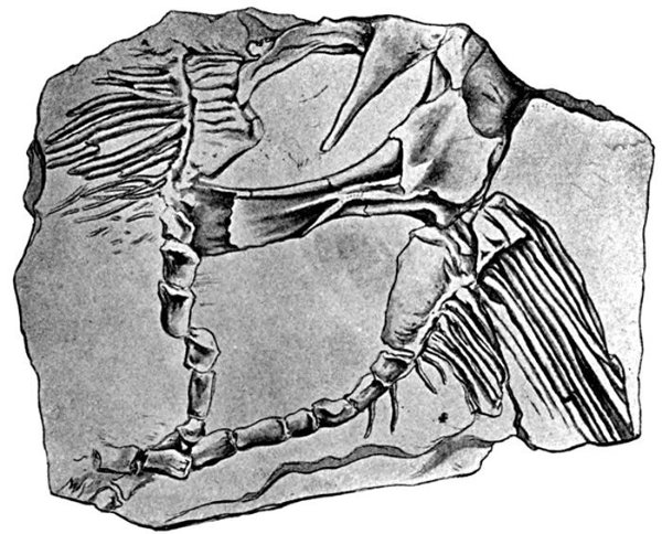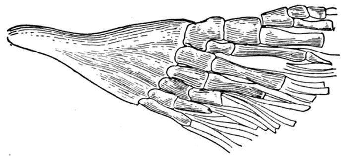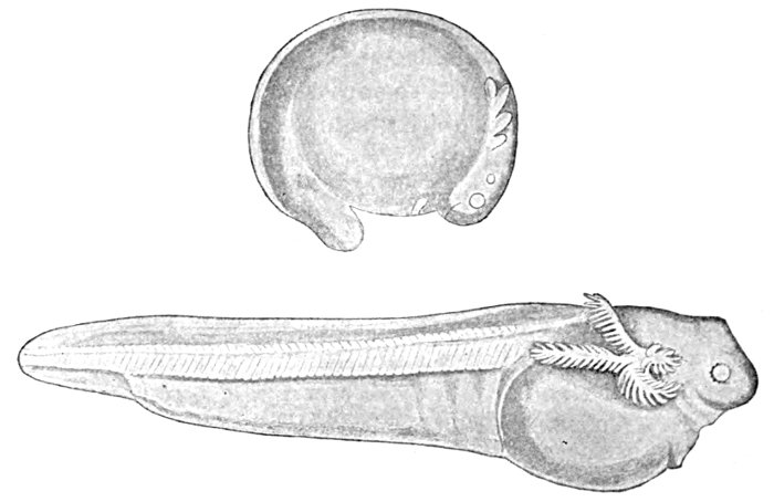[166] The abbreviated mode of development of the fins is most interesting; from the earliest stage they assume outwardly the archipterygial form; the retarded development of the limbs seems curiously amphibian-like; the pectorals do not properly appear until about the third week, the ventrals not until after the tenth.