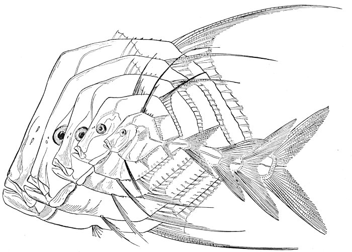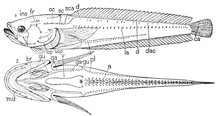 | Spines of the Catfishes.—Venomous Spines.—The Lancet of the Surgeon-fish.—Spines of the Sting-ray.—Protection through Poisonous Flesh of Fishes.—Electric Fishes.—Photophores or Luminous Organs.—Photophores in the Iniomous Fishes.—Photophores of Porichthys.—Globefishes.—Remoras.—Sucking-disks of Clingfishes.—Lampreys and Hogfishes.—The Swordfishes.—The Paddle-fishes.—The Sawfishes.—Peculiarities of Jaws and Teeth.—The Angler-fishes.—Relation of Number of Vertebræ to Temperature, and the Struggle for Existence.—Number of Vertebræ: Soft-rayed Fishes; Spiny-rayed Fishes; Fresh-water Fishes; Pelagic Fishes.—Variations in Fin-rays.—Relation of Numbers to Conditions of Life.—Degeneration of Structures.—Conditions of Evolution among Fishes. | 179 |