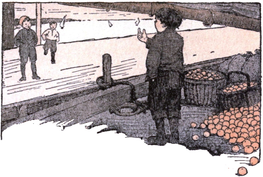 It wasn’t long before there were children in the trees everywhere, shaking the branches, throwing the fruit down to the grassy ground, where their fathers and mothers sat laughing and wondering at everything. To the children it was all like a fairy tale. There were dances and games and every kind of jollity under the stately old trees, and it took some skill to get the people to their places when the feast was ready.