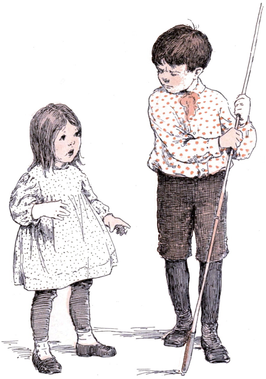Not a sign of Johnny’s was to be seen. Who could have been so mean as to take it away? Of course he had put it in its place. (A great stirring up of things and searching everywhere.) Dear! How meddlesome people were! Here they had gone and hidden away his fishing rod. Really, wouldn’t any one be angry?