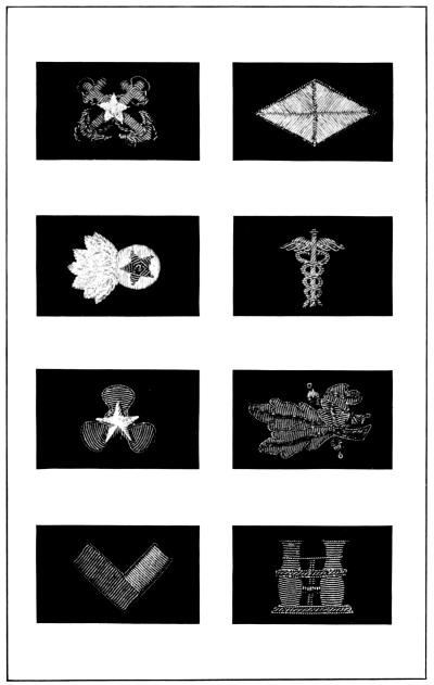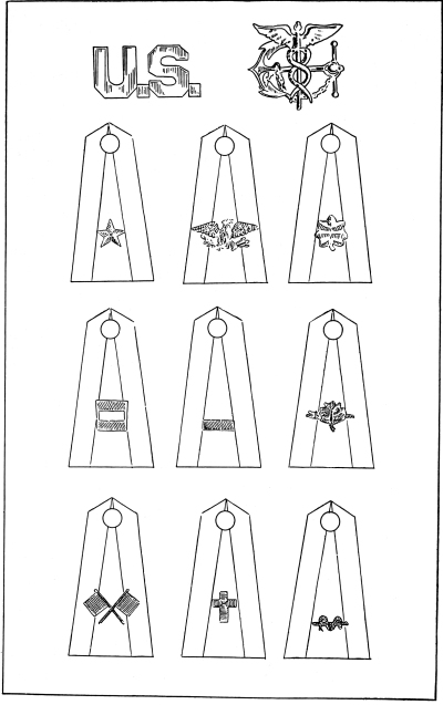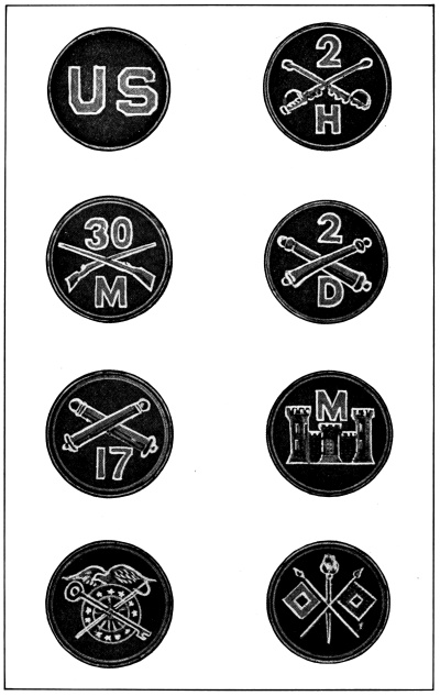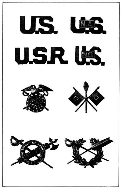 In the United States services there are also distinctive regimental and corps devices which, while indicating the branch and corps to which the wearer belongs, also keep alive the glorious traditions of the past wars.