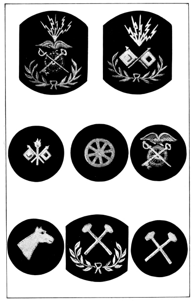 Such regimental badges, founded largely upon sentiment but still appealing mightily to the imagination of the young recruit that joins the colors with the high heart of youth, are a great aid to discipline and efficiency, since discipline means the implicit obedience on the part of every one in the service to the orders from higher authority in such a manner as to secure the greatest cohesion and coordination and hence the greatest effect. These little metal badges bearing the symbols [Pg 6] and mottoes that bring daily to the minds of their wearers the valorous deeds that their regiment has done in the past arouse the spirit of emulation and competition, the desire to fight as well or better than the old regiment fought on some other bloody field perhaps a century ago, and help to create esprit de corps—the soul of an army.