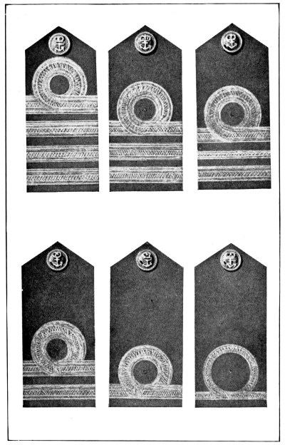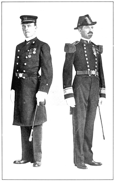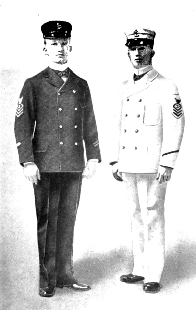 In the naval services of the world the adoption of a regulation uniform dress for officers and enlisted men came at a much later date than in the armies, although the marines, being essentially “sea soldiers,” followed the uniform regulations of the shore forces to a great extent and were put in uniform much earlier than the sailors of the ships’ crews.