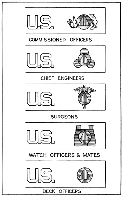 - Second Mate, U. S. Lightship, insignia of rank, 186