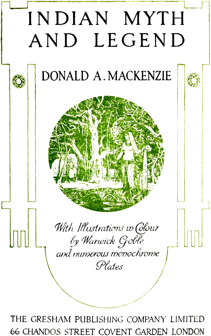 The Introduction deals with various aspects of the study of these ancient myths and legends which have been the inspiration of a national literature infused with much grandeur and sublimity. The historic Aryan controversy, of which the science of comparative mythology is a by-product, is passed under review, and it is shown to what extent philological theories regarding race problems have been modified during recent years as a result of the adoption of broader and more exact methods of ethnic and archæological research and the ever-extending study of comparative mythology. There has also been condensed much important data dealing with the early phases of Aryo-Indian civilization accumulated for historical purposes by industrious and painstaking Sanskrit scholars who have been engaged in investigating and systematizing the internal evidence of the various religious poems and treatises. It will be found that no general agreement has yet been reached regarding Aryo-Indian chronology, but it now appears to be well established that although there were early cultural as well as racial “drifts”, fresh invasions, which had far-reaching results in the social and religious life of northern India, occurred at a late period in what is known as the Vedic Age. In consequence, the problem presented by this ancient civilization tends rather to grow more complex than to become simplified. Its origin is still wrapped in obscurity. At the very dawn of history Aryo-Indian culture had attained a comparatively[Pg iii] high state of development, and a considerable period must be allowed for its growth. Even some of the ancient Vedic hymns, addressed by priests to the deities, are styled “new songs”, which suggests the existence of an older collection. Many of them also afford indications that immemorial beliefs were in process of change and fusion. The sublime deities, Varuna and Mitra (Mithra), for instance, were already declining in splendour. Yet they must have been closely associated with Indra, king of the gods, in the unknown Aryan homeland, as is made evident by an inscription recently deciphered at Boghaz Köi, in Asia Minor, which refers to them as deities of the mysterious Mitanni people who were of Aryan speech like the settlers in the Punjab. There is no evidence, however, that the Mitanni rulers gave recognition to the fire god Agni, who in India was exalted as the twin brother of Indra. The problem involved may not be devoid of ethnic significance, although the identity of the Agni-worshipping section of the early raiders remains obscure.