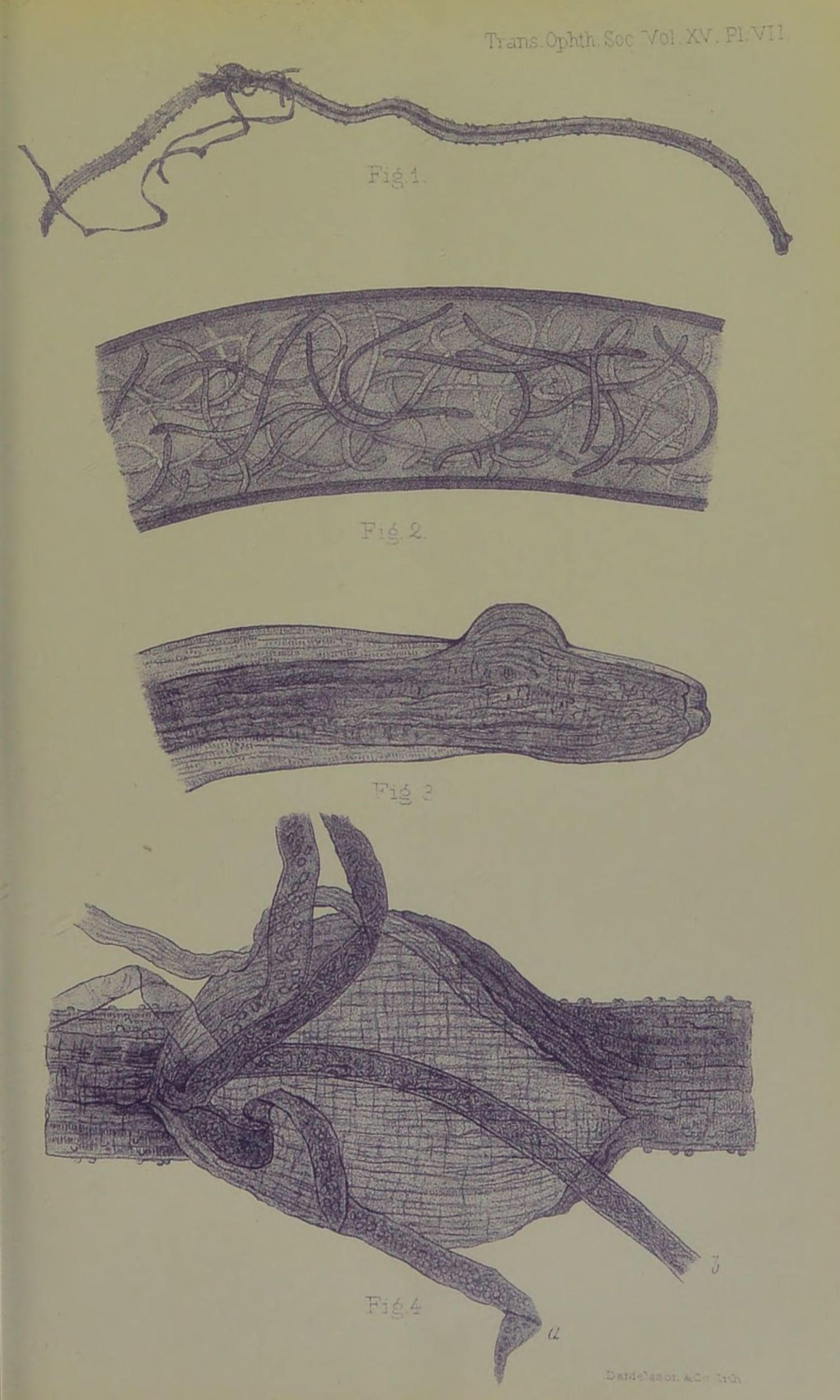 Another case is mentioned by Dr. Sigaud in his work on the ‘Climate and Diseases of Brazil.’ He states he was witness in 1833 of the extraction, by M. dos Santos, of a filaria situated in the orbit on the surface of the sclerotic of a negress.
