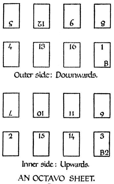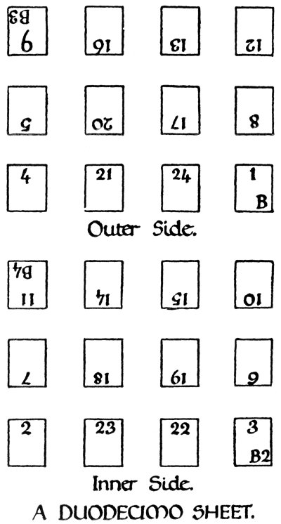 The object of this text-book is to describe the best methods of bookbinding, and of keeping books when bound, taking into account the present-day conditions. No attempt has been made to describe all possible methods, but only such as appear to have answered best on old books. The methods described are for binding that[19] can be done by hand with the aid of simple appliances. Large editions of books are now bound, or rather cased, at an almost incredible speed by the aid of machinery, but all work that needs personal care and thought on each book, is still done, and probably always will be done, by hand. Elaborate machinery can only be economically employed when very large numbers of books have to be turned out exactly alike.