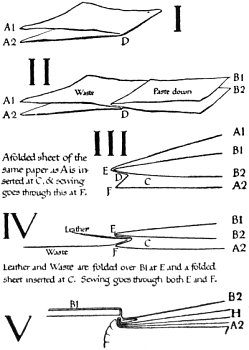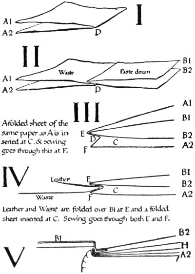 The reasons for binding the leaves of a book are to keep them together in their proper order, and to protect them. That bindings can be made, that will adequately protect books, can be seen from the large number of fifteenth and sixteenth century bindings now existing on books still in excellent condition. That bindings are made, that fail to protect books, may be seen by visiting any large library, when it will be found that many bindings have their boards loose and the leather crumbling to dust. Nearly all librarians complain, that they have to be continually[18] rebinding books, and this not after four hundred, but after only five or ten years.