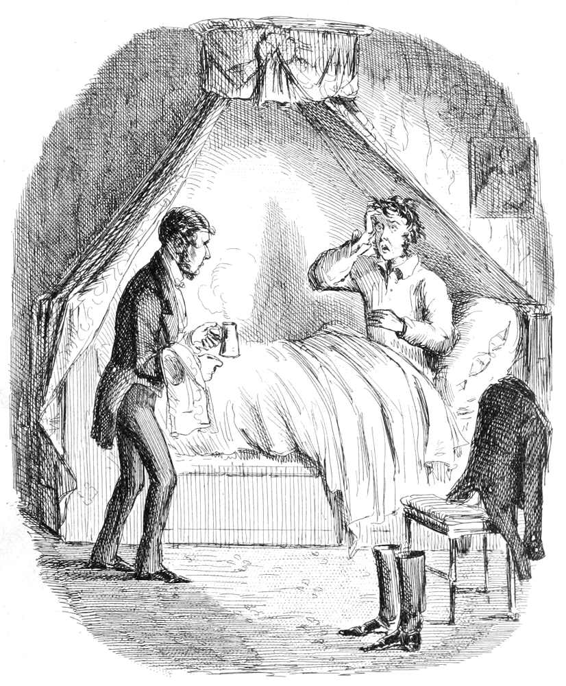 Being somewhat ashamed of Mr. Jericho who, as it has been shown, left his wife to the solitude of her dinner-table, whilst he, luxurious spendthrift, could dine with company abroad,—we should be very happy if we could, without any more ado, put him to bed at once, and indignantly tucking him up, and with perhaps an allowed allusion to the sort of head that awaited him in the morning, let the good-for-nothing fellow snore till the curtain-rings danced again, allowing him only to wake up in time for the next chapter. But this we cannot do. The stern, iron moral it is our wish to impress upon the world—yielding as it always is to such impressions—compels us to steady Mr. Jericho to his bed-side; and even when there, not for awhile to leave him.