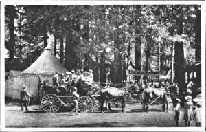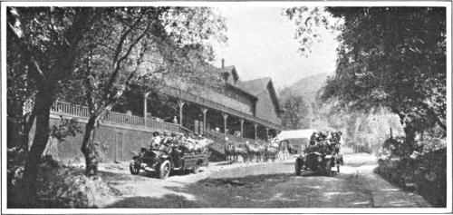 The terminal of the railroad. From here a run of 10 miles is made up Merced Canyon to Yosemite Valley
