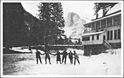 This is camp life in its most elementary aspect. From that the conditions of tent and bungalow life in the Valley range up to the finely equipped and organized camps, where the visitor may enjoy all the advantages and luxuries of comfortable hotel life, while at the same time living close to the ground. The established camps at present are Awahnee, El Capitan, Yosemite Camp, Lost Arrow and Camp Curry. The affairs of each camp are managed from its own central office, a building where mail is received and the interests of the campers are looked after. The daily life of these communities is full of incident. Each camp has its entertainments and its gala performances. One has a fine, large bathing pavilion and plunge; another, a festival hall. Moving pictures are exhibited in the evenings; there are lectures and concerts; and a large, well equipped dancing pavilion makes the hours fly fast for young people. Communication between the camps is easy, for there are auto-buses, “jitneys,” as well as ponies and burros, and things are stirring actively among the camps most of the time. No one need lack for entertainment. Between the single tent in a remote part of the Valley and the populous camp community there is a wide range for choice, and variety of conditions enough to make everyone happy.