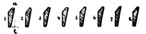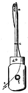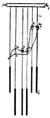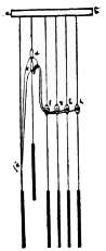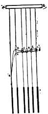 The hooks as used for raising leash, mail, lingo, and warp-thread, consist of wires 16 to 17 inches long, with a crook on each end. On the lower crook is fastened the leash by means of the neck-cord.