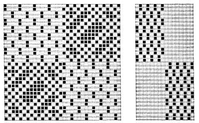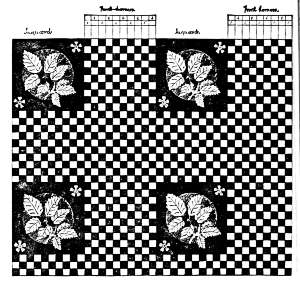 Double Cloths—Study of the best methods of combining different weaves, as: Designs backed with weft; designs backed with warp; designs backed with warp and weft; designs for double cloth, double faced.