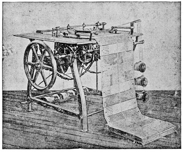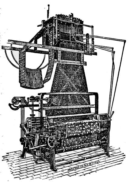 Jacquard returned to Lyons in the year 1804 to take charge of the work-house. During his stay at this place he finished his machine. He was an experienced workman, combining together the best parts of the machines of his predecessors in the same line, and succeeded as the first person in obtaining an arrangement sufficiently practical to be generally employed. In 1806 Napoleon Buonaparte changed his position, giving him an annuity of 3000 francs, but compelling him to transfer his invention to the city of Lyons, as well as any further inventions. Until 1810 Jacquard had great troubles, as his machine was not understood by the weavers. So violent was the opposition made to its introduction that he was compelled to leave Lyons in order to save his life. The Conseil des Prudhommes broke up his machines in the public places, and Jacquard was delivered over to universal ignominy. But after some years had passed the machine proved to be of the greatest value, and on the spot where the model was destroyed a statue to Jacquard now stands. He died August 7th, 1834, in Quillins, near Lyons, at 82 years of age. At the time of his death over 30,000 Jacquard machines were in operation in his native city.