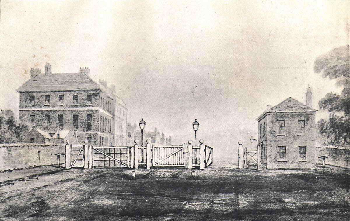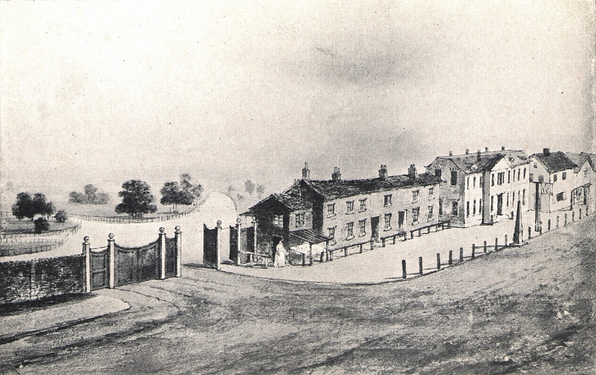 | THE GATES OF HYDE PARK IN 1756 (From a Drawing by Jones.) |