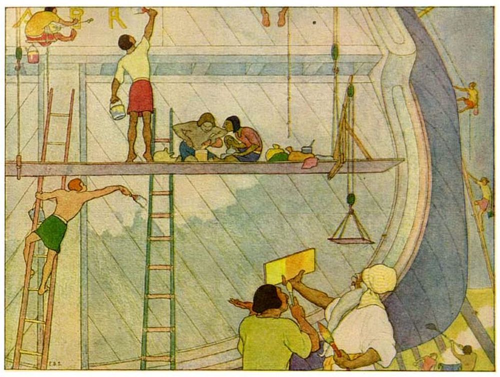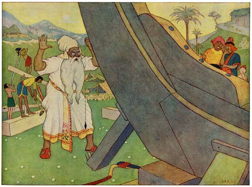Then Noah went his way, and set to work to build him a great ship, to be ready for the day of deluge.