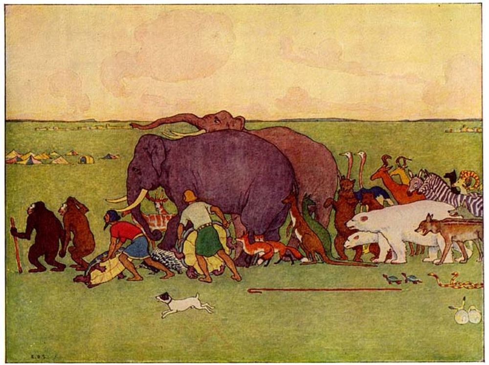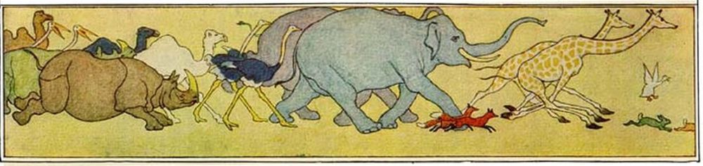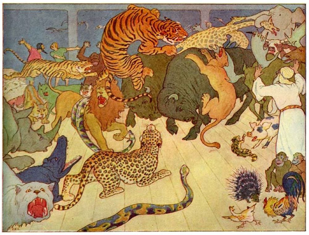 Then new troubles began. For now the other beasts and birds, fearing to be left behind, all tried to get in at once, and could not be controlled.