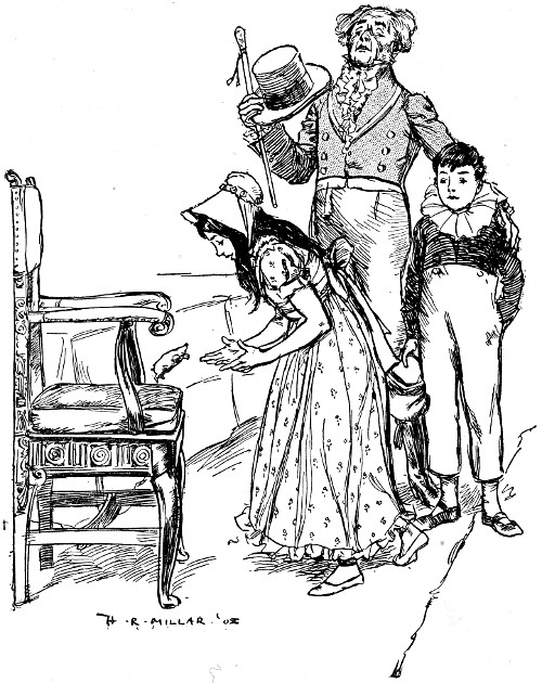 “HE TOOK OFF HIS HAT AT THE LAST WORDS AND SWEPT IT, WITH A FLOURISH, NEARLY TO THE GROUND.” (See page 217.)