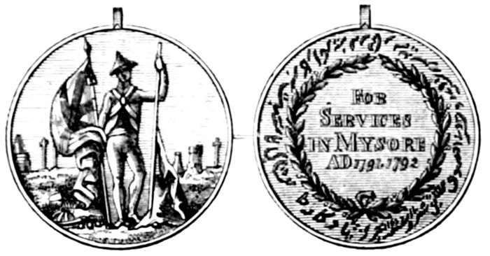 Artillery, one of the brigades of the army—An Infantry Officer, Brigade-Major—Succeeded by an Artillery Officer—Dress—School orders—School—Inoculation—Companies numbered by seniority—Method of exploding mortar-shells on reaching the ground—Fire in the arsenal—Death of Colonel Pearse—Lieut.-Colonel G. Deare, Commandant—War in the Carnatic—Second Battalion of Artillery sent—Sattimungulum—Bangalore—Retreat from Seringapatam—Nundydroog—Savendroog—Attack on fortified camp at Seringapatam—Return to Bengal, p. 107–162.