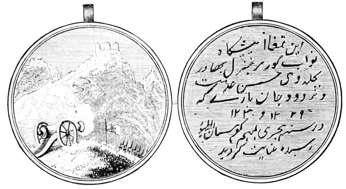 91. The 4th company 6th battalion, with Lieutenants A. Christie and Robertson, formed part of this force. Captain Lawrence, as political agent, accompanied it, and procured four guns from the Seiks, which, however, were of little use, as their carriages broke down.