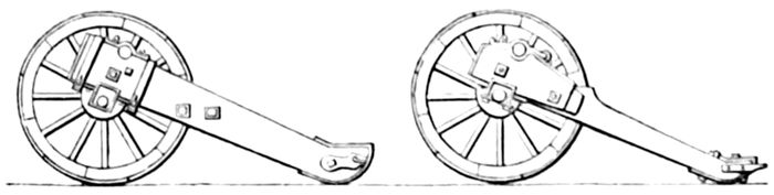 Matériel organization, and its successive changes—Guns and carriages first used—Royal pattern—Madras pattern—Ammunition-carriages—Tumbrils—Horse Artillery ammunition-carriage—Elevating-screws—Ordnance in use—Siege-carriages—Howitzer and Mortar combined carriage—Gribeauval’s pattern—French caisson—Hardwicke’s pattern—Horse Artillery guns—Mountain-train carriages—Siege-carriages and ordnance—Royal pattern (block trail)—Gun and Ammunition carriages introduced, p. 163–198.