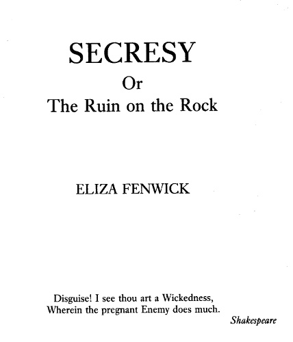 I must have been devoid of taste and feeling, if in viewing the exquisite scenery of the park, I had not forgotten the gloomy entrance and the dreary building. I found a seat on the margin of that fine sheet of water which is skirted by your majestic wood; and I rested there till twilight began to spread itself over the horizon. Who would not, Sibella, although evening had cast its misty shade over the tall trees and impressed an awful serenity on every surrounding object, who would not, I say, like me have ventured into the wood rather than have returned to Mr. and Mrs. Valmont and their castle. I found the paths so admirably contrived in their breaks and windings, that I could not forbid myself to proceed. Every now and then I had an imperfect view of something dark, rugged, and mountainous. On a sudden, I caught a glimpse of a rude pile of stones, seemingly carried to a tremendous height, which as suddenly vanished from my sight, amidst the intercepting branches; a few steps further, it was again before me as a wild ruin tottering on the projecting point of a rock. Silence, solitude, the twilight, the objects filled my mind with a species of melancholy. Fancy had become more predominant than judgment. I slackened my pace: I breathed heavily: when, suddenly turning into a new path that I expected would bring me to the foot of the rock, I beheld a female form, clothed in white, seated at the foot of a large oak. Her hair, unrestrained by either hat or cap, entirely shaded her face as she bowed her head to look on a little fawn, who in the attitude of confidence and affection was laying across her lap.