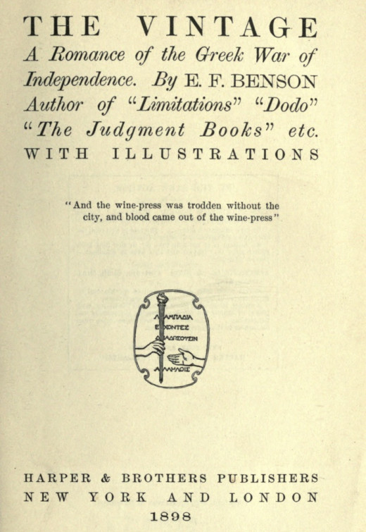 Directly opposite the wine-shop stood a whitewashed house, built in a rather more pretentious style than the dwellings of most Greek peasants, and fronted by a garden, to which a row of white poplars gave a specious and private air. A veranda ran around two sides of it, floored with planks, and up the wooden pillars, by which it was supported, streamed long shoots of flowering roses. A low wooden settee, cushioned with two Greek saddle-bags, stood in the shade of the veranda, and on it were sitting two men, one of whom was dressed in the long black cassock of a priest—both silent.