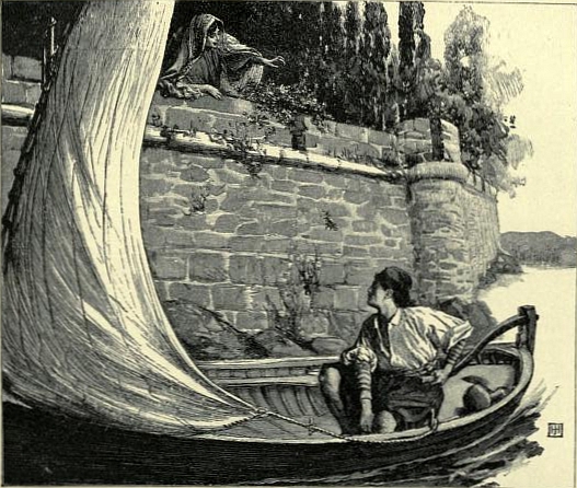 "HALF CARELESSLY SHE THREW INTO THE BOAT THE ROSES SHE HAD PICKED"