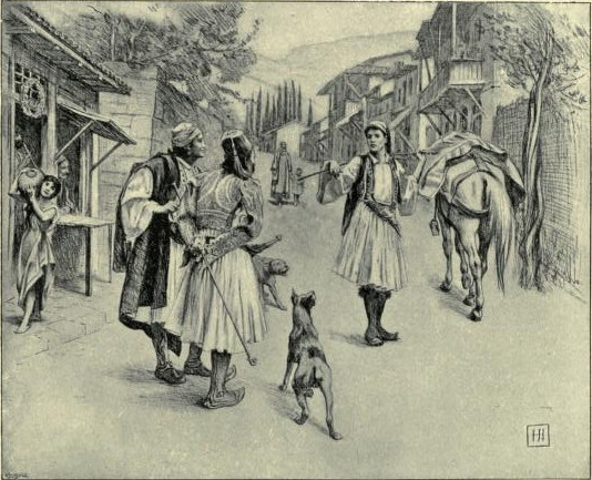 Mitsos' horse was stabled below, and in silence the two went out together. Then, as they turned to walk down the deserted street to the gate, Mitsos passed one arm through the bridle and put the other round Yanni's neck.