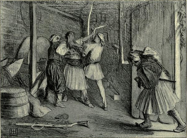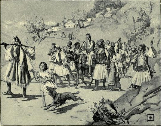 Mitsos' father sat still watching him. Eleven years ago Father Andréa had been obliged to make a journey to Athens to settle about some plot of land belonging to his wife, who had lately died, and, if possible, to sell it—for under the Turkish taxes land was more often an expense than a revenue. He had taken with him his only daughter, a girl of five or six years of age, pretty even then, and with promise of wonderful beauty to come. On his way home, just outside Athens, he had been attacked by some half dozen Turks, and, after a desperate, hopeless resistance, had been left on the road more dead than alive, and his daughter had been carried off, to be trained, no doubt, to the doom of some Turkish harem. He must have lain there stunned for some hours, for when he awoke again to an aching consciousness of soul and body, the day was already reddening to its close, and the shadow of the hills of Daphne had stretched itself across the plain to where he lay. Wounded and bleeding as he was, and robbed of the money he had got for the land, he had dragged himself back to Athens, and stayed there for weeks, until his hope of ever finding his Theodora again had faded and died. For it was scant justice that was given to the Greeks by their masters, who treated them as a thoughtless man will scarce treat an animal that annoys him. Rape, cruelty, robbery was their method of rule, and for the unruly a noose.