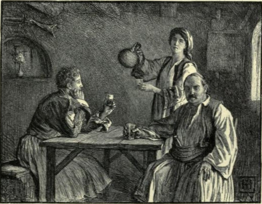 By the roadside, a mile from the town, stood a small wine-shop, in front of which projected a rough wooden portico open to the air on three sides, and roofed with boughs of oleander, plucked leaf and flower together. A couple of rough stools and a rickety table stood in the shade in order to invite passers-by to rest, and so to drink, and the owner himself was lying on a bench under the house wall in wide-mouthed sleep. A surly-looking dog, shaggy and sturdy, guarded his slumbers in the intervals of its own, and snapped ineffectually at the flies.