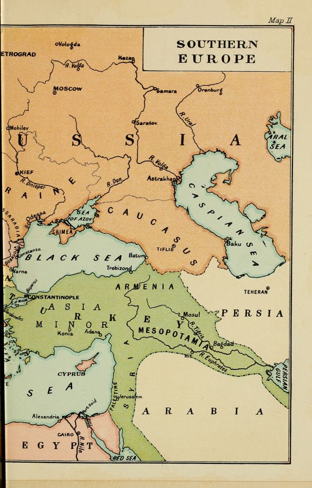 It may reasonably be asked what induced Turkey to give over into German hands all that constitutes a nation’s independence, and the answer is the “attractive proposition” which Germany laid before her. This bait which she has so temptingly dangled before the rulers of the Otto{23}man Empire in order to persuade them to let her raise men and materials to fight her battles for her is the vision of an immensely expanded Ottoman Empire which shall have its capital at Constantinople. The book written by Tekin Alp, under which pseudonym nestles a Salonica Jew (I believe called Cohen), admirably sets this forth. His work, entitled “Turks and the Pan-Turkish Ideal,” published in 1915, and distributed broadcast over the Ottoman Empire as German propaganda, shews us into what dreamings have the Turks been hypnotised. All Moslem peoples are to be comprised in this re-united Turkey, which will include the whole of Egypt as far as Victoria Nyanza, Arabia, Persia, the greater part of India, the littoral of the Black Sea, the Caspian Sea, the Aral Sea. All this will be Turkey’s, if Turkey will prosecute Germany’s war to its victorious close. But should she detach herself or should the Allies be victorious, she knows what to expect; Arabia, Syria, Palestine, Armenia, Mesopotamia, will be plucked from her, and until lately (January, 1918) the Allies had proclaimed that they would expel her from Europe altogether. It was “up to her” to choose, and she chose. But, if she only knew it, not only will she never get, in the event of Germany’s victory, one yard of all those{24} territories that are so succulently dangled in front of her, but under German penetration she has already lost the last remnants of her Empire. Should Germany be victorious, Turkey will no longer exist: there will be but a new Germany in Europe and a new Germany in Asia, where Turkey once was. Germany will not technically have annexed it, since no doubt there will still be a Sultan in Constantinople. But none the less it will be hers, and its acquisition will be a stout volume, bound like a prize, in the records of the Mittel-Europa policy. For Turkey will, in other words, form part of the great high-road which Germany is constructing (with paper money to be repaid in gold) to lead from Berlin to Bombay. As for the value of German promises with regard to the augmented Empire, Turkey is already beginning to learn something, for though the littoral of the Black Sea was promised her, she has lately been very smartly snubbed for venturing to intrude herself in affairs concerning the Crimea.
