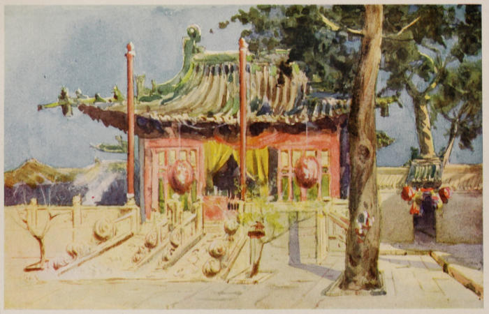 At Peking I had the pleasure of being welcomed by the Anglo-Chinese Friendship Society, with which I have been connected ever since it was started. Its object is to cement the friendship between our peoples by putting Chinese and other students when they come to England into touch with congenial English people, and showing them the courtesy and helpfulness they need on arrival in a strange land. It is greatly to be wished that more Chinese of both sexes should come and study in England, and see what is best in our civilization. So many go to America in comparison with those who come here; yet not a few Chinese students have told me that they felt it would be better for them had it been the reverse, because our ideals are nearer to Chinese ones, and our desire for self-realization is so keen. A denationalized Chinaman is a poor product, but a Chinaman who has got his own Chinese culture and adds to it the best we can give of Western knowledge and culture, can, when he returns home, be a tremendous power in the moulding of the new China. He has a reverence for all the great past of his own country, and will strive to preserve its beauty, together with all that is good and great in its literature, art and customs. Wherever I travelled in China this fact was brought home to me. So much that is of historic and artistic value is being ruthlessly swept away, and the tragedy of it is that it is so unnecessary. For instance, in Canton, the most historic Yamen[1] was pointed out to me on a wide new thoroughfare, but its façade had completely lost its dignity and character by the guardian lions having been swept away. There was more than room enough for them, but their value had been ignored. I wanted to see the wonderful old water-clock, the triumph of ancient Chinese science, but was informed it had been taken away in the grand new[21] improvements, and would be set up in a garden. “But do they know how to set it up again so that it will go?” I asked. “Probably not,” said my Chinese guide complacently. So it is with countless treasures in China to-day.