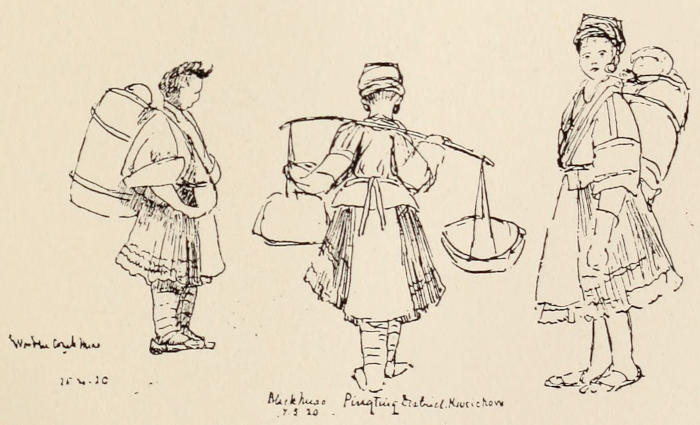 Strange as it may seem to the comfort-loving Britisher, Pleasure is the main lure to China, and a sort of basilisk fascination which is quite irresistible. Naturally, there are other reasons also—this time it was to take a young doctor niece to see what the Chinese Empire was like (we passed through thirteen out of the eighteen provinces) before she settled down to work in her own hospital. Besides this, in the interests of geography and a better understanding of the Chinese people by our own people it seems worth while for an artist to try and show what China is like at the present time. That is the reason for writing this book. I frankly own that I hate writing, but am consumed with a desire that people should know what is now going on in China. My rooted conviction is that the future of the world depends largely on what happens in China during the next decade. This is the decisive hour. An American deplored to a Chinaman the troublous condition of the country, and received a reply to the following effect: “You must have patience with us, we are only a nine-year-old Government, and, if my memory does not deceive me, the United States did not get their constitution for thirteen years.”