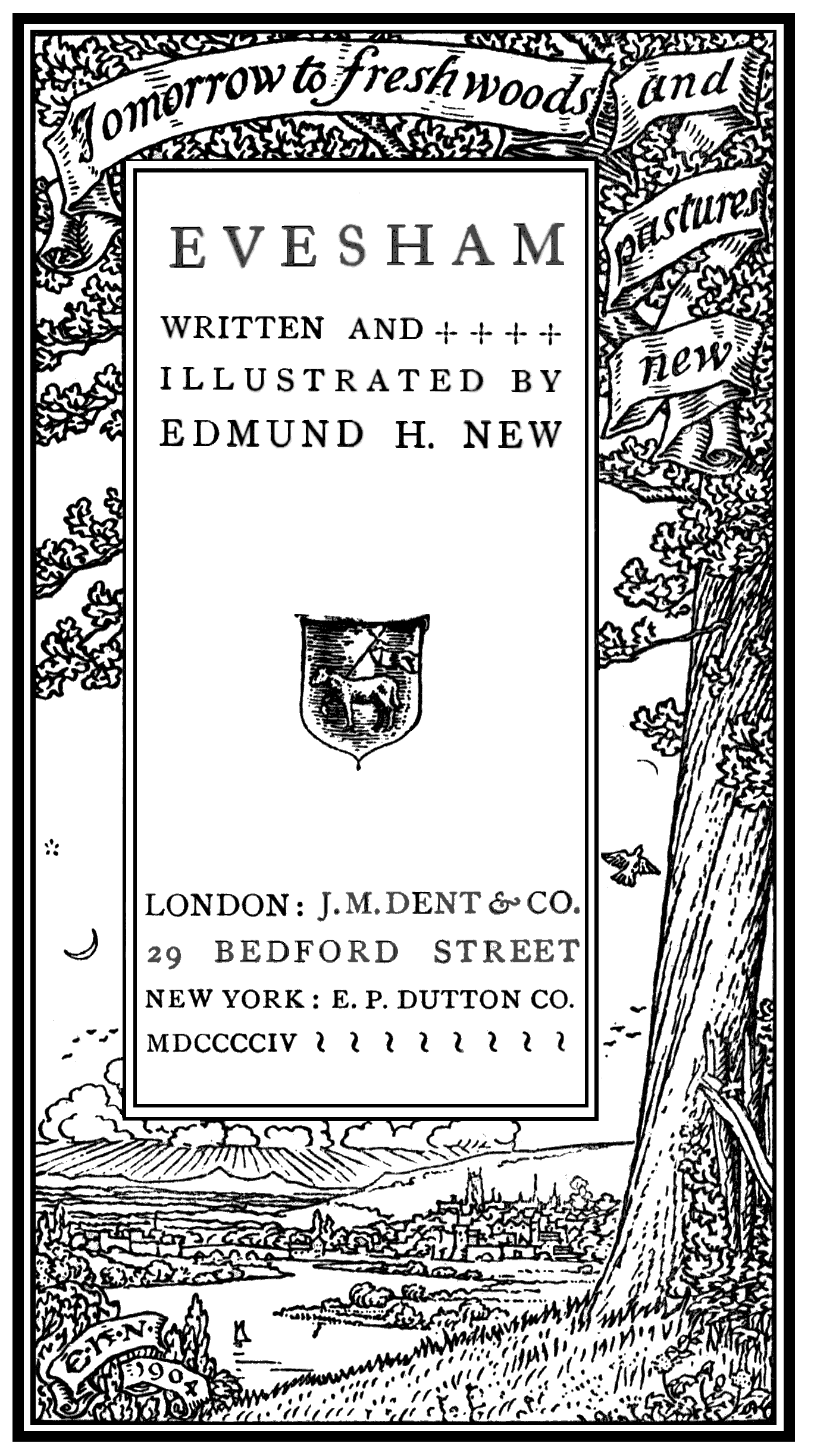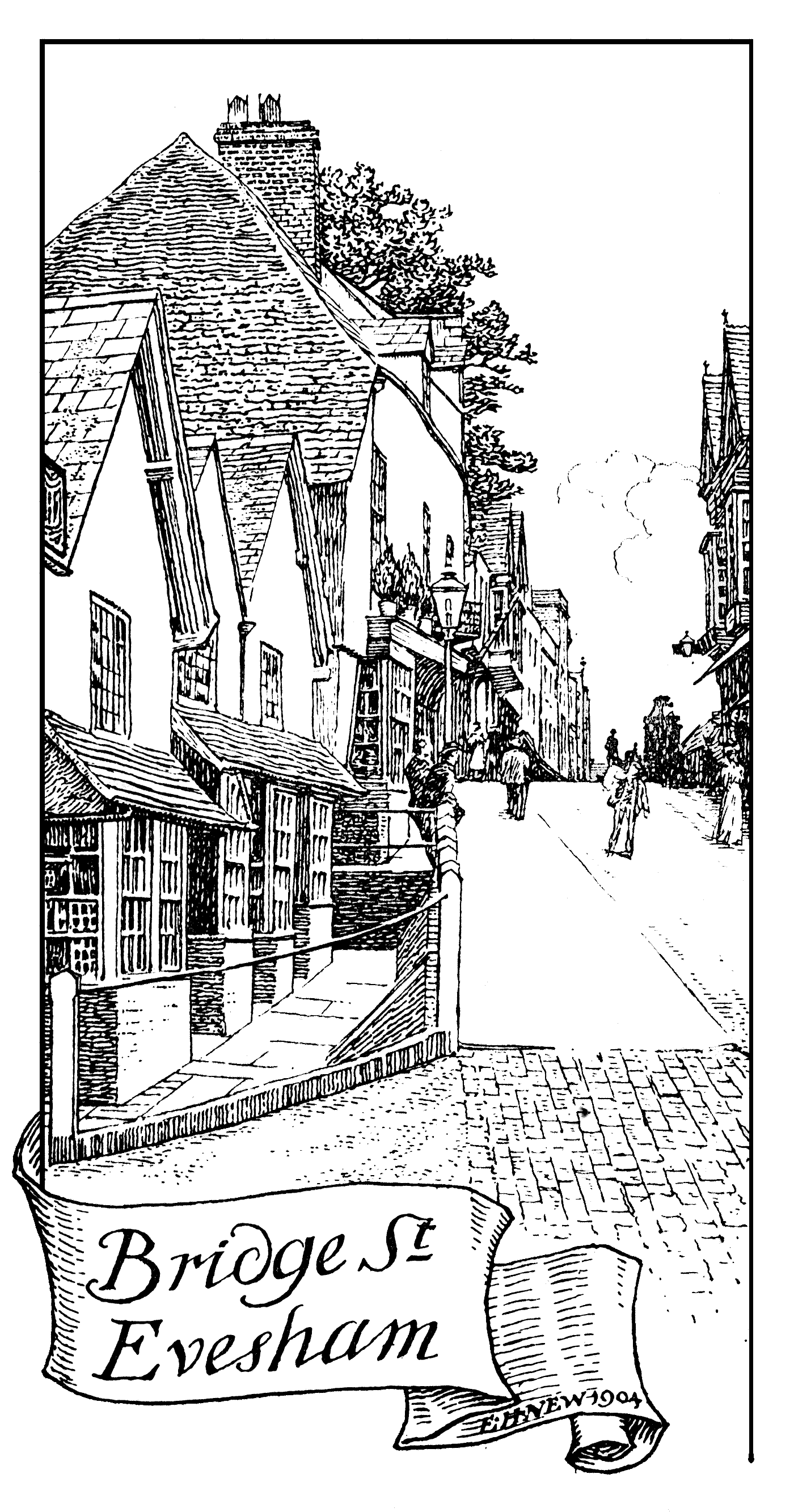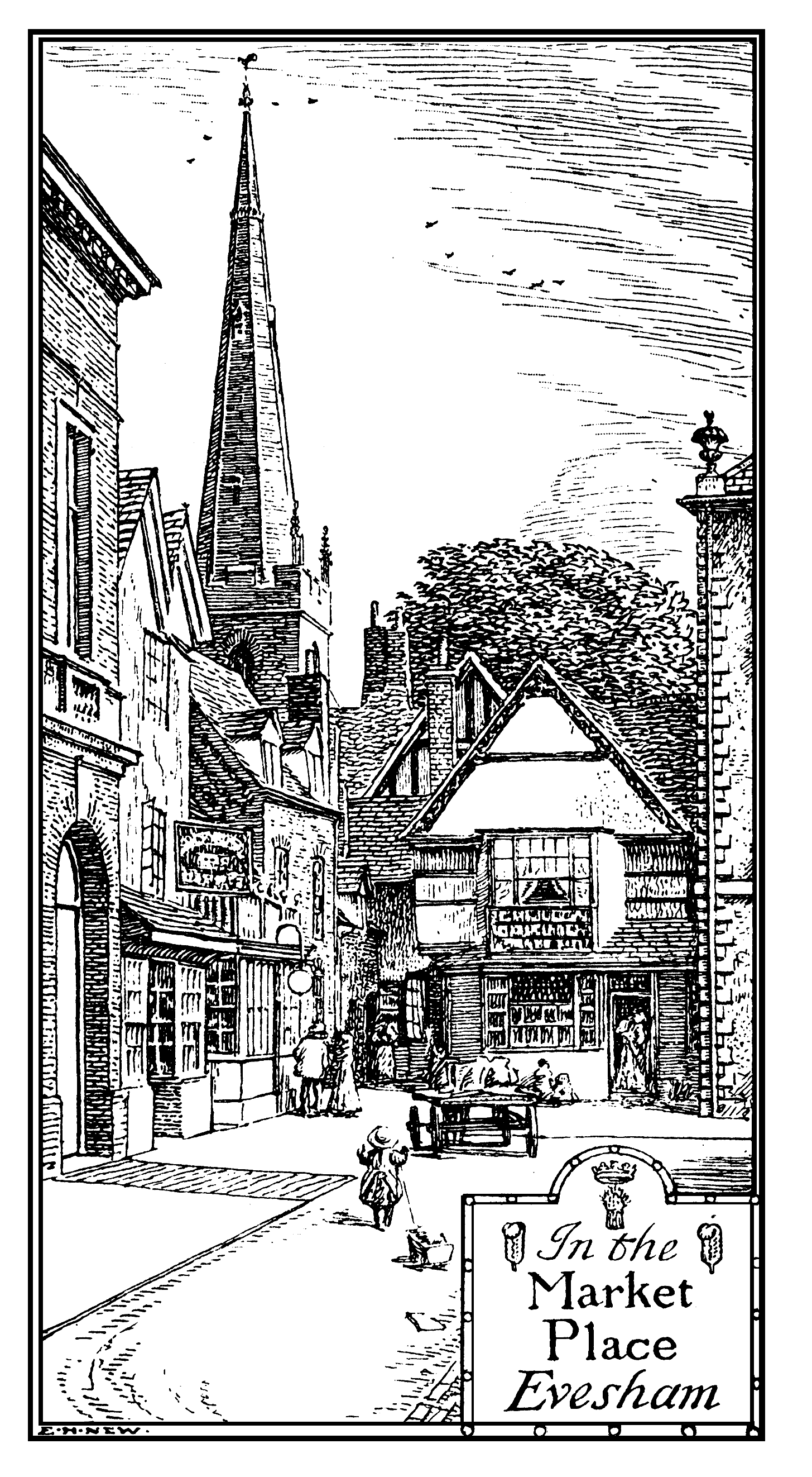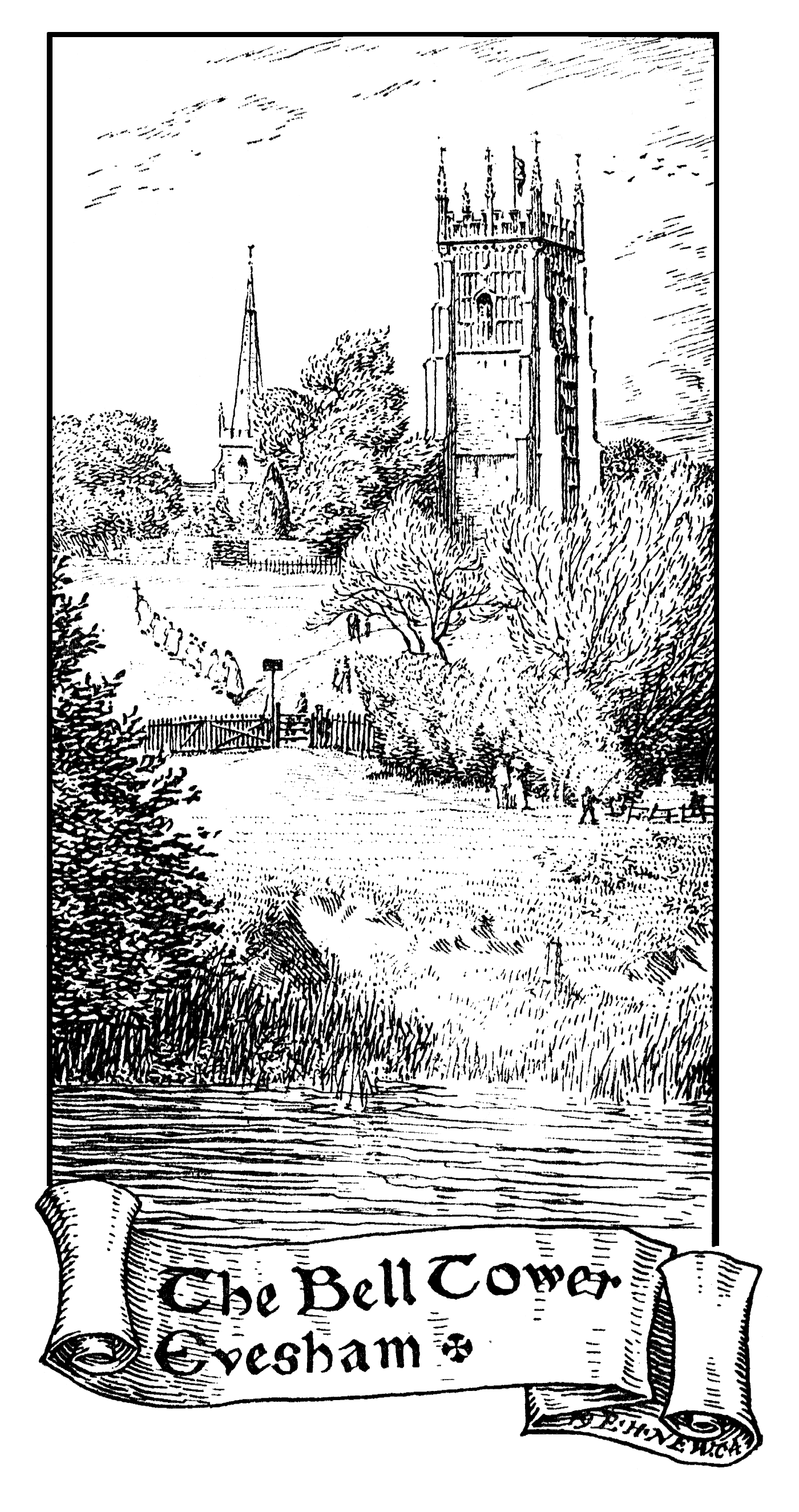 Evesham stands on a kind of peninsula formed by a deep loop of the river Avon on its way from Stratford-on-Avon to Tewkesbury. The broad vale in which it lies is enclosed by a semicircle of hills, which provide a background to every varied landscape, and give a sense of homeliness and seclusion which those who are familiar with unbroken stretches of level country will at once recognise and appreciate. From the east to the south-west range the Cotswolds, not striking in outline but depending for their beauty in great part upon the play of light and shade and the variety given by atmospheric effects. To dwellers in the vale the appearance of the hills not only reflects the feeling of the day but foretells the coming weather. When a delicate, blue haze shrouds their forms, entirely obliterating the more distant heights, the pleasure-seeker rests content in the promise of a fair morn; but no pleasant expectations can be formed when, robed in deepest purple, they seem to draw in and crowd together, and with vastly increased bulk to frown upon the darkening vale.