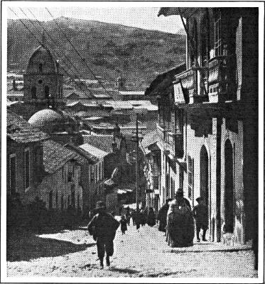 On May 25, 1809, the first city of Spanish South America revolted against the rule of Spain. That city was Sucre (soo´-kray). This town was originally the site of an Indian village called Chuquisaca (choo-kee-sah´-kah) or Chuquichaca, which means “golden bridge.” In 1538 the Spaniards under Captain Pedro Angules (pay´-dro ahn-goo´lace) settled there and called the place Charcas (chahr´-kahs) and Ciudad de la Plata (thee-oo-thath´ day lah plah´tah), but the natives always clung to the original Indian name. In time the town became the favorite residence and health resort of the rich mine owners of Potosí, some distance away. After the South Americans had won their independence, the name of Chuquisaca was changed to Sucre, in honor of the general who won the last decisive battle of the war and then became the first president of Bolivia. Since that time the city has suffered much from quarrels between the various factions of Bolivia. It is now the nominal capital of the republic, but the seat of government for Bolivia is located in La Paz. Since the government was removed there, Sucre has greatly diminished in importance.