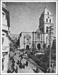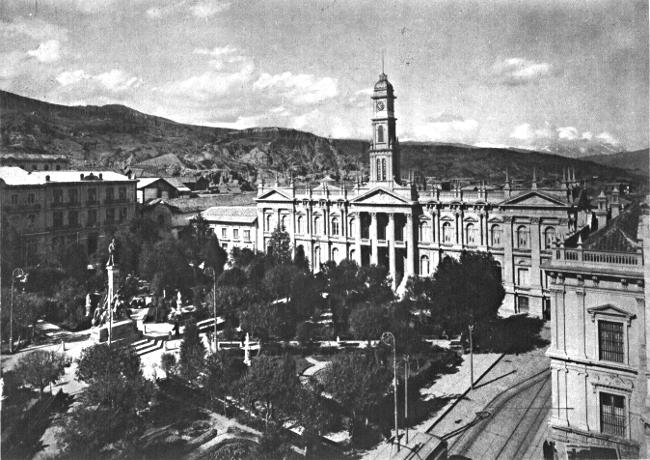 The Plaza Murillo is so named from the patriot Pedro Domingo Murillo, who was executed there in 1810. This spot is also the place where independence was first declared in 1809. It has been the scene of many turbulent episodes. On one side of the plaza is the Government Palace, erected in 1885. This contains the offices of many state officials, and, in the upper story, the office and residence of the president and his family.