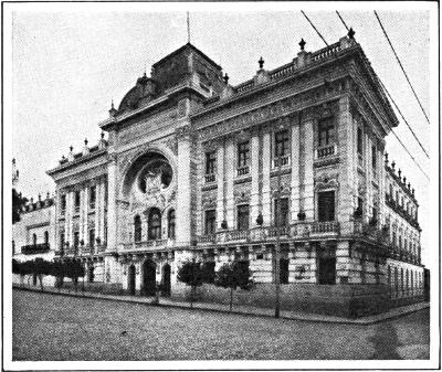 Sucre is laid out regularly. It has broad streets, a large central plaza and a public garden, or promenade, called the Prado. There are nine plazas altogether. That called the “25 de Mayo” has a stream on each side. One of these flows northward and joins the Mamoré (mah-mo-ray´) and so reaches the Amazon. The other turns southeast, going on to the Pilcomayo (peel-ko-my´-o) and at last to the estuary of La Plata (lah-plah´-tah). The Cathedral of Sucre, called the Metropolitan Cathedral, is the richest in Bolivia. It dates from 1553, and possesses an image of solid gold with a rich adornment of jewels, called “The Virgin of Guadalupe (gwah-dah-loo´-pay).” This is said to be worth a million dollars. The legislative palace of Sucre contains handsomely decorated halls; but this building is no longer occupied as such by the national government. Other important buildings are the Cabildo (kah-beel´do), or town hall; the mint, dating from 1572; the courts of justice; and the University of San Francisco Xavier (sahn frahn-this-ko zav´-ih-er; Spanish, hahvee-air´), which was founded in 1624 and has faculties of law, medicine and theology.