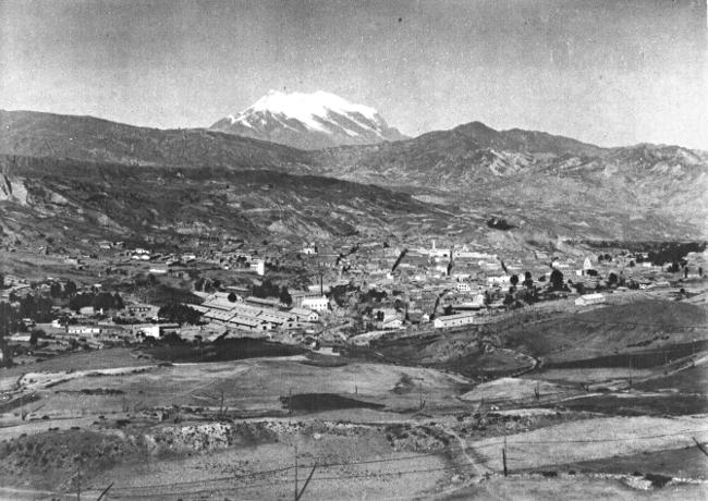 The city’s official name is La Paz de Ayacucho (eiah-koo´cho). It is built in a deeply worn valley of the Cordillera Real, which is believed to have formed an outlet of Lake Titicaca (tee-tee-kah´kah). La Paz is built on both banks of the Rio de La Paz, or Rio Chuquiapu, thirty miles southeast of Lake Titicaca. The valley in which the city lies is about ten miles long and three miles wide. It is very barren and forbidding, and its precipitous sides, gullied by rains and colored by mineral ores, rise 1,500 feet above the city. Above Illimani (eel-yee-mah´-nee) and other giant mountains of the Bolivian Cordilleras rear their snow-capped peaks. The upper edge of the valley is called the Alto de La Paz, or Heights of La Paz.