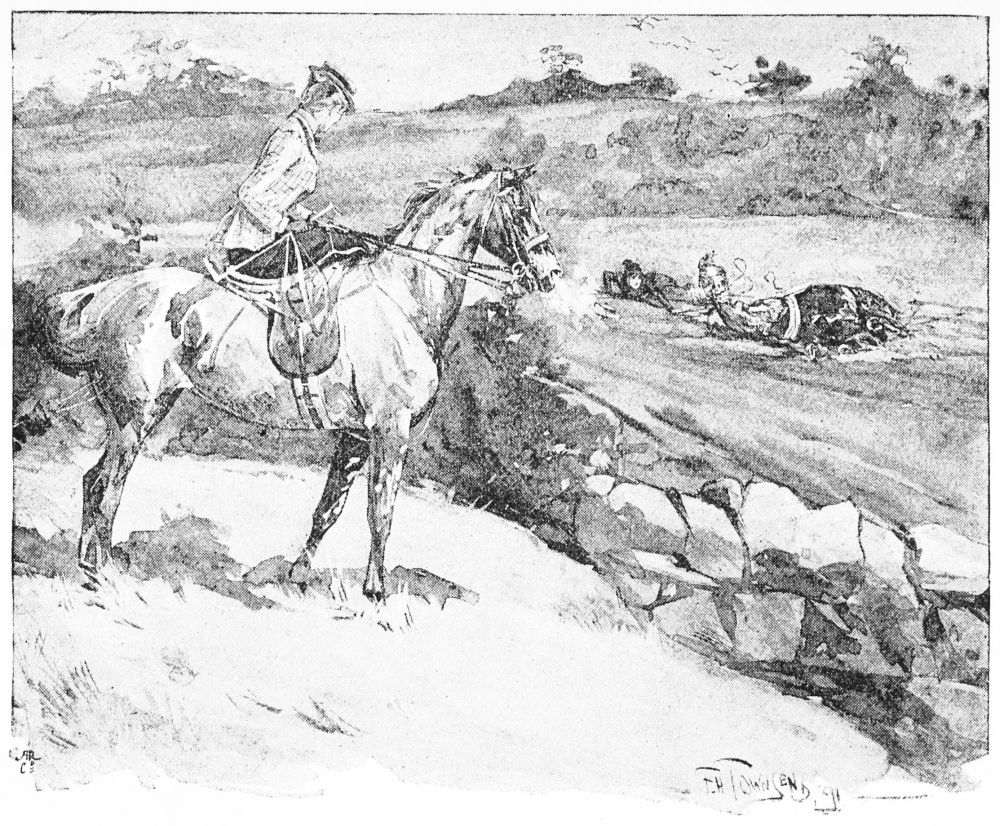 By the time that she had been caught and immured in the bedroom of the nearest cottage, we were covered with confusion and blazing with heat, and while we were precariously scrambling on to our horses’ backs by the help of the pigstye door, we were{9} told by an excited old man that the hounds had found, and were ‘firing away like the divil’ out of the far side of the wood. This happened to be one of those statements that are founded not so much on fact as on a desire to keep things stirring and pleasant, but none the less did it send us at inconvenient speed to the other side of the covert, there to find that the hounds had never left it, and were hunting slowly back towards the side from which we had just come.