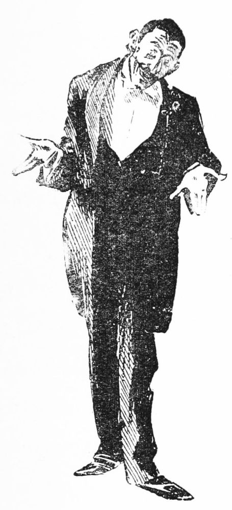 In another moment my cousin was swept into the line of the top couples, and her partner, a pallid, oily youth of Jewish aspect, was whirling her down the room with such a coruscation of capers as would have done credit to a catherine-wheel. What exactly she looked like as, hopelessly conspicuous in{212}