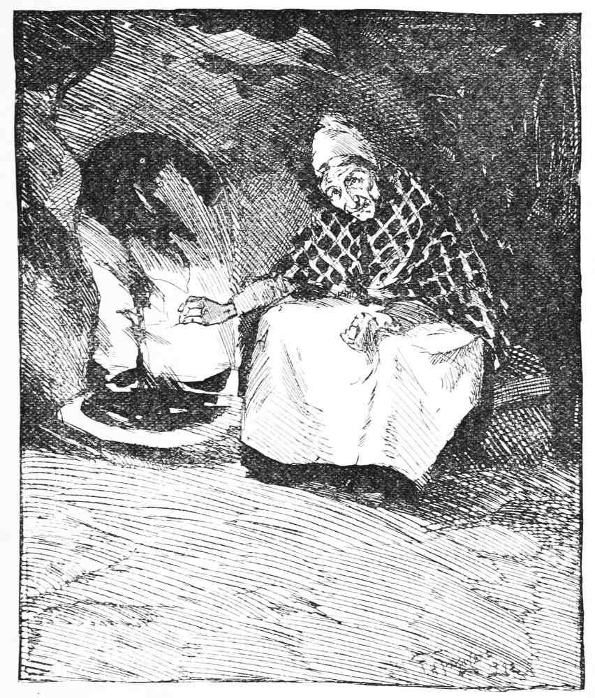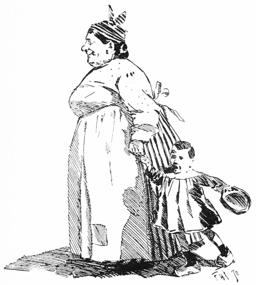 More and more dances followed, till our legs ached, and the cement floor wore holes in our shoes, and then, as we were preparing to go back to the house, it was said that ces dames ought absolutely to see the ‘Bignou.’ The ‘Bignou’ sounded like the name of some monster of the middle ages, and might have been the local name for a werewolf for all we knew; but we stayed, nevertheless, and presently saw enter{215}ing by another door nothing more alarming than four little old women. It was explained to us that the ‘Bignou’ was an ancient dance, almost obsolete in that part of the country, and that these four were the only worthy exponents of it, and had been actually awakened out of their first sleep to dance it for us. A rough-looking boy was hoisted on to a barrel at the end of the room—a boy who had come all the way from Brittany for the vintage (if, as is highly probable, I did not misunderstand my partner), bringing with him the little wooden instrument upon which he now set up a shrill piping that sounded like a penny whistle with a bluebottle in it. This archaic flute was itself the ‘Bignou’ from which the dance took its name, and the extraordinary tune which it buzzed forth might have been composed by Tubal Cain. The four old danseuses, in their white caps and full black skirts, took their positions in the middle of the room with a prim consciousness of their own importance, and all that we had yet seen was child’s play compared with the intricate measure{216}