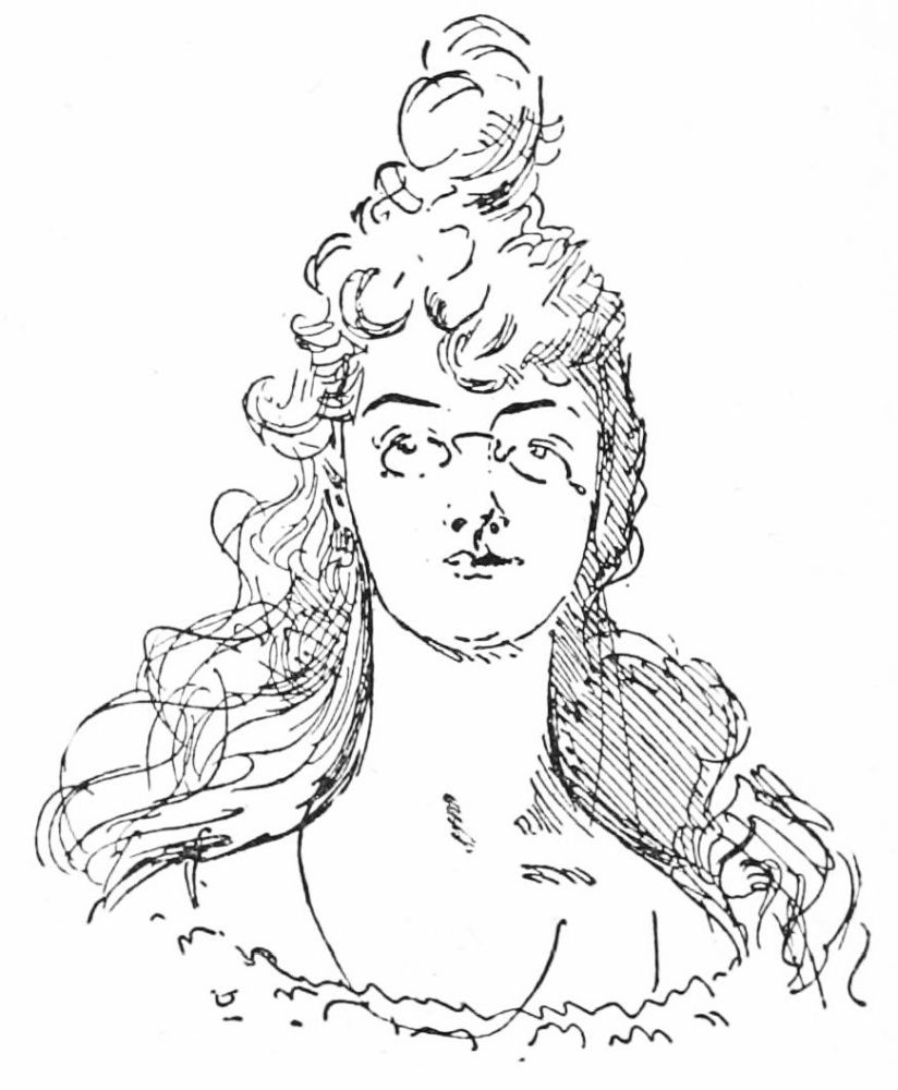 While the carriage was coming round, I made haste to change into my own skirt. I have no bump of locality for the interior of strange houses, and when I had left the room in which the change was effected,{198} I found myself confronted by three doors all equally likely to lead into the hall. I selected the most likely one, and rashly advanced. It was the boudoir of Madame,—Madame who had retired with a bad headache, and was now seated over a bright wood fire, with her yellow-covered book of ‘Confessions’ in her hand, and a cigarette between her lips. Sympathy for her, thus cornered in her last stronghold, was my first emotion as I fled, but sympathy for myself has been a more lasting feeling as I think how I have established myself in the mind of Madame de Q. as a crowning example of the gaucherie and stupidity of Les Anglais pour rire.{199}