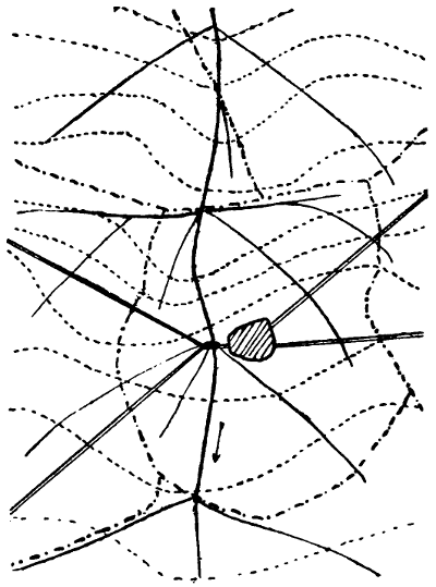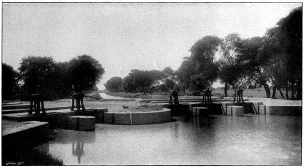 —The largest irrigation canals are fed from perennial rivers. When the canal flows throughout the year it is called a “Perennial Canal.” Chief among these are the canals of India and particularly those of Northern India, some of which have bed widths ranging up to 300 feet, depths of water up to 11 feet and discharges up to 10,000 c. ft. per second. Other large canals as for instance many of those in Scinde, Egypt and the Punjab, though fed from perennial rivers, flow only when the rivers are high. These are called “Inundation Canals.” Many canals, generally of moderate or small size, in other countries and notably in the Western States of America, in Italy, Spain, France and South Africa, are fed from rivers and great numbers of small canals from reservoirs in which streams or rain-water have been impounded. Sometimes water for irrigation is pumped from wells and conveyed in small canals. In Australia a good deal of irrigation is effected from artesian wells. Irrigation works on a considerable scale are being undertaken in Mexico and the Argentine. In this book, irrigation works of various countries are referred to and to some extent described, but the perennial canal of Northern India, with its distributaries, is the type taken as a basis for the description of the principles and methods which should be adopted in the design, working and improvement of irrigation channels and it is to be[2] understood that such a canal is being referred to where the context does not indicate the contrary. Any reader who is concerned with irrigation in some other part of the world will be able to judge for himself how far these principles and methods require modification. The branches and distributaries—all of which are dealt with—of a large perennial canal cover all possible sizes.