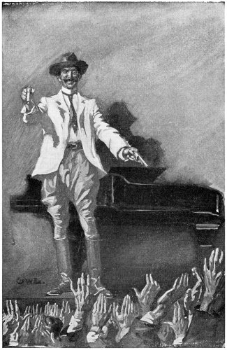 "I see!" and an enlightened gleam shot through the eye-glass. "So this is her way of getting to know a poor overworked wreck who came out to patch his lungs in peace and quiet! And[Pg 7] she's going to sing him one of his own songs; she's gone to Melbourne to dress the part; and you're not going to sing anything at all!"