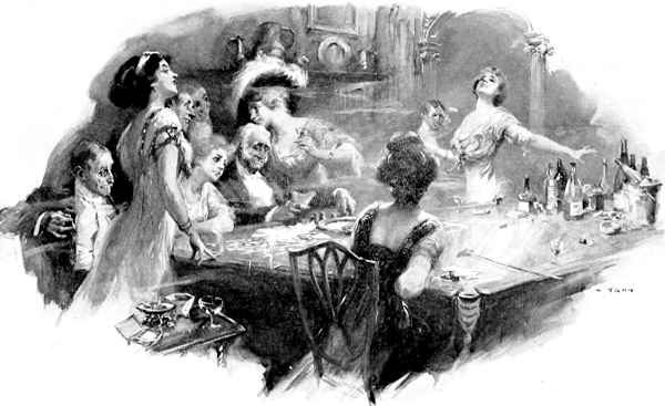 Then I did know. She was the bedizened beauty who had raked in the five-pound notes, and smashed a magnum of champagne in her excitement, at the orgy in Sir Christopher Stainsby's billiard room.