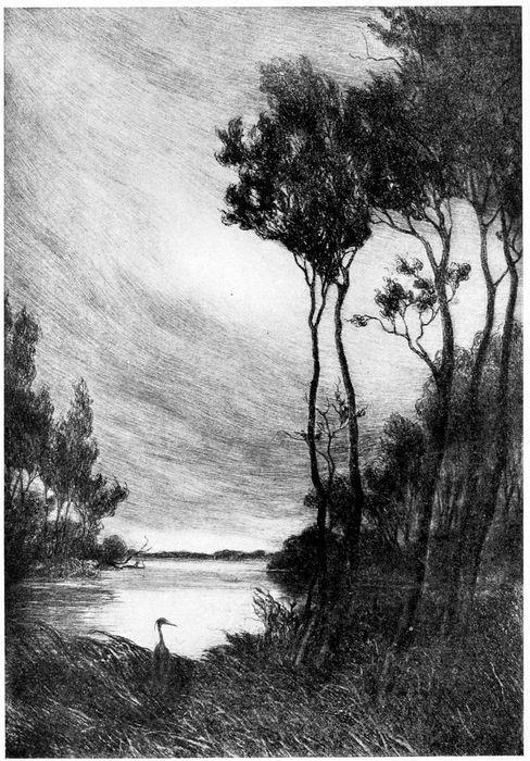 The perfect reflections in the clear still waters, with the inverted tracery of the tree tops against the skies below, decorated with the statuesque figures of the herons, pictured dreamlands that seemed of another world, and tempted errant fancy into remote paths.
