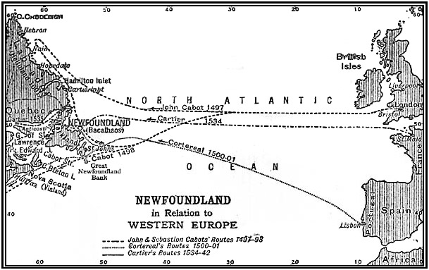 The island of Newfoundland, which is the tenth largest in the world, is about 1640 miles distant from Ireland, and of all the American coast is the nearest point to the Old World. Its relative position in the northern hemisphere may well be indicated by saying that the most northern point at Belle Isle Strait is in the same latitude as that of Edinburgh, whilst St. John's, near the southern extremity, lies in the same latitude as that of Paris. Strategically it forms the key to British North America. St. John's lies about half-way between Liverpool and New York, so that it offers a haven of refuge for needy craft plying between England and the American metropolis. The adjacent part of the coast is also the landing-place for most of the Transatlantic cables: it was at St. John's, too, that the first wireless ocean signals were received. From the sentimental point of view Newfoundland is the oldest of the English colonies, for our brave fishermen were familiar with its [8]banks at a time when Virginia and New England were given over to solitude and the Redskin. Commercially it is the centre of the most bountiful fishing industry in the world, and the great potential wealth of its mines is now beyond question. On all these grounds the story of the colony is one with which every citizen of Greater Britain should be familiar. The historians of the island have been capable and in the main judicious, and to the works of Reeves, Bonnycastle, Pedley, Hatton, Harvey, and above all Chief Justice Prowse, and more recently to J.D. Rogers,[1] every writer on Newfoundland must owe much. Of such elaborate work a writer in the present series may say with Virgil's shepherd, "Non invideo, miror magis"; for such a one is committed only to a sketch, made lighter by their labours, of the chief stages in the story of Newfoundland.